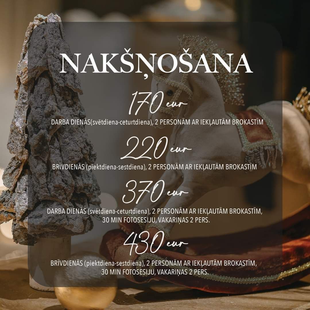 | On weekends (Friday-Saturday) | 430 € | Accommodation for 2 people with breakfast included, 30 min photo session and dinner |