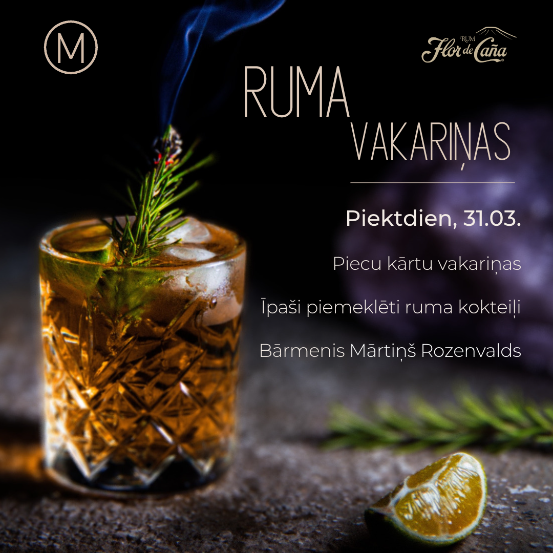 31. martā aicinām uz šefpavāra pārdomātām vakariņām ar piemeklētiem ruma Flor de Cana kokteiļiem, bārmeņa Mārtiņa Rozenvalda pavadībā - vakars solās būt patiesi baudpilns!